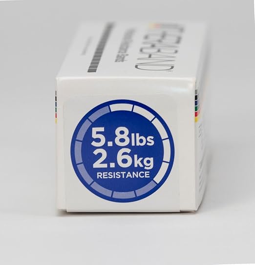 - Extra Heavy Blue Bands are the 5th of 8 resistance levels, for rehab and medium level resistance. They offer 5.8 lbs. resistance at 100% elongation, a 25% increase from the previous color, and 8.6 lbs. at 200%. The roll measures 6 yards long x 5" wide