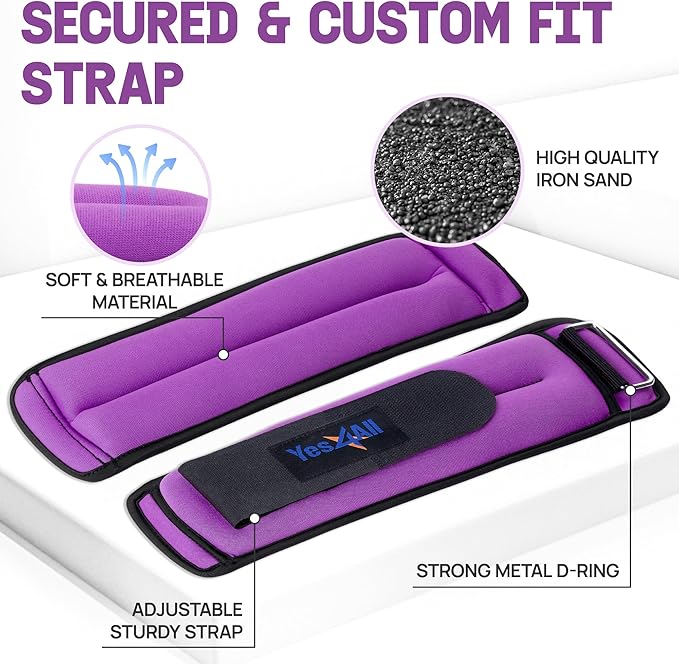 Yes4All Wrist & Ankle Weights Pair 1lb -10lbs, Adjustable Strap for Walking, Jogging, Pilates, Gym Fitness Workout for Women, Men