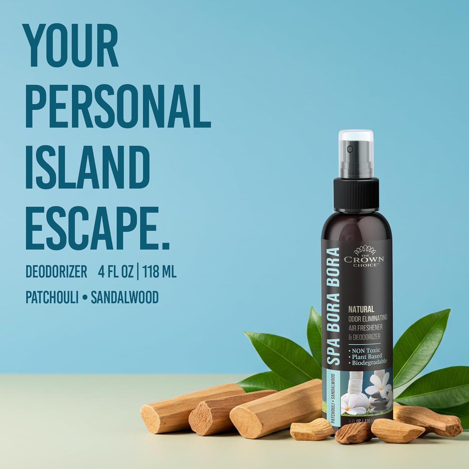 - SANDALWOOD & PATCHOULI AIR FRESHENER SPRAY This natural air freshener spray is infused with essential oils for a refreshing, clean, and long-lasting, soothing home fragrance. Perfect as a fabric refresher spray, musty basement odor eliminator, neutralize urine smell, and pet deodorizer.