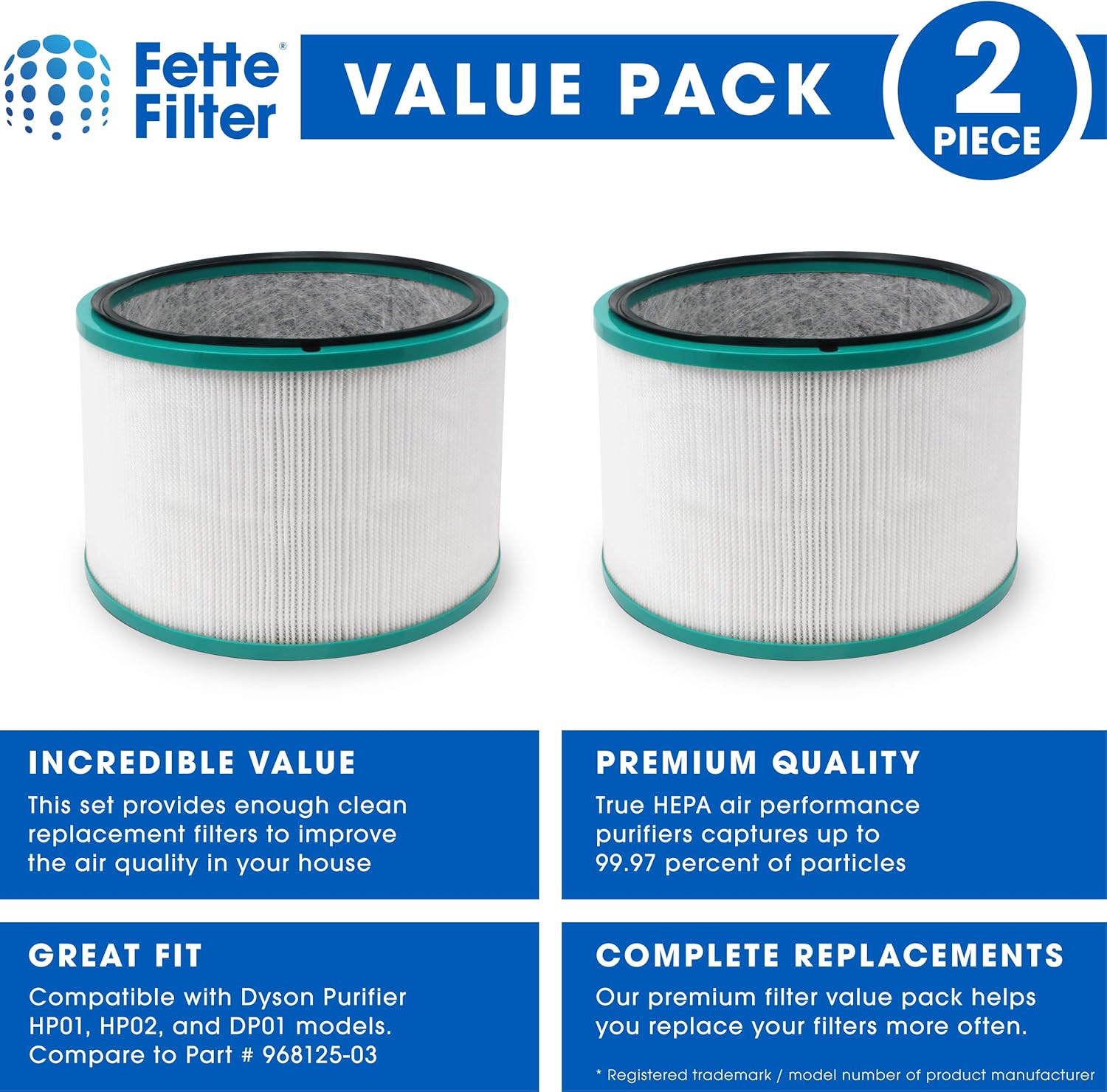 Fette Filter - 968125-03 Premium 360° Glass Filter Compatible with Dyson HP01 HP02 DP01 DP02 for Dyson Pure Hot Cool Link Desk Air Purifying Sytem Part # 968125-03 96812503 (2-Pack)