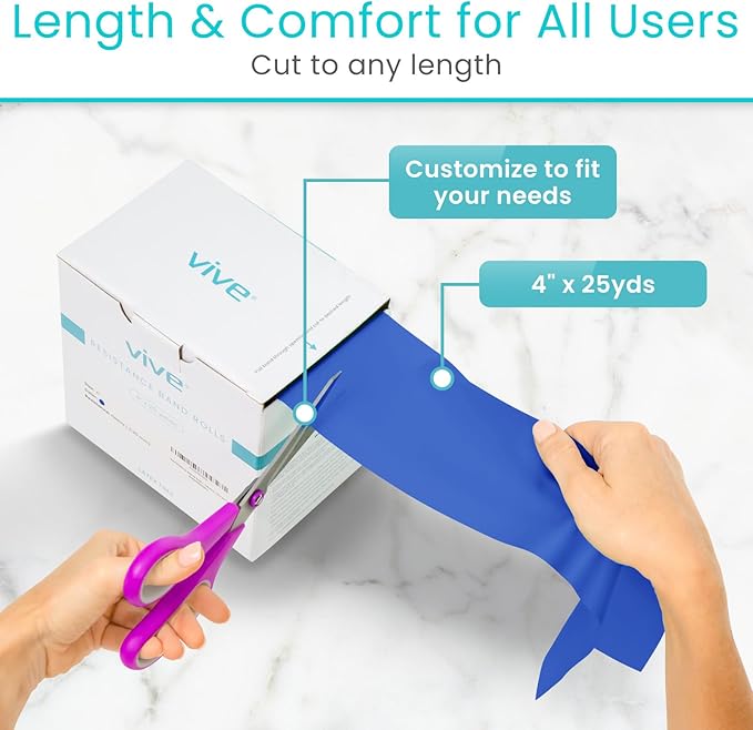 - CUT TO ANY LENGTH: The perfect option for a customized resistance band, the Vive resistance band rolls can be cut to any length for integrative workouts, rehabilitation, strength training or physical therapy. Ideal for clinicians, physical therapists and trainers.