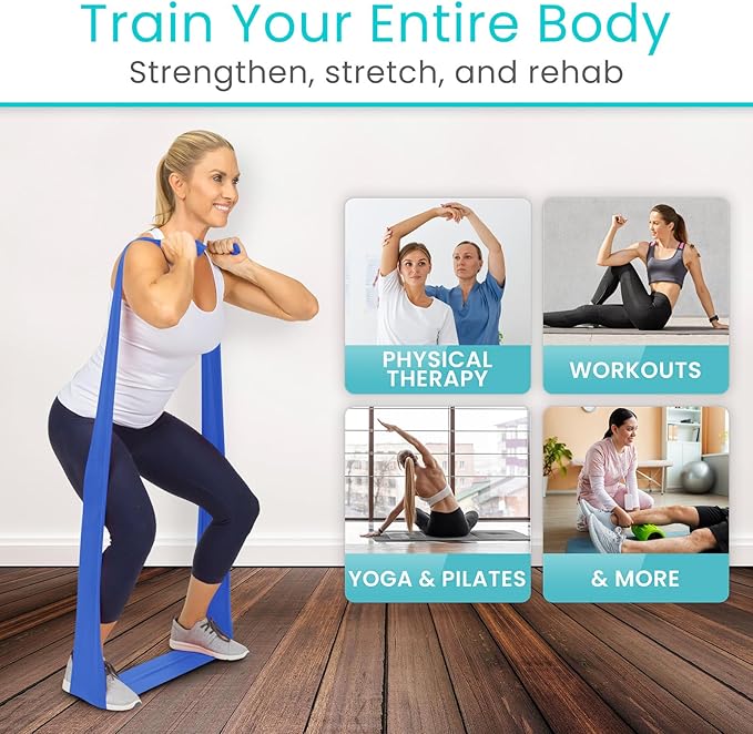 - STRENGTHEN AND STABILIZE MUSCLES: Versatile resistance band material is ideal for strengthening, stabilizing and toning the muscles while increasing flexibility and range of motion. Easily integrates with popular workouts, yoga and rehabilitation exercises for greater effectiveness.