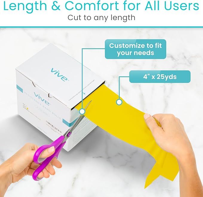 - CUT TO ANY LENGTH: The perfect option for a customized resistance band, the Vive resistance band rolls can be cut to any length for integrative workouts, rehabilitation, strength training or physical therapy. Ideal for clinicians, physical therapists and trainers.