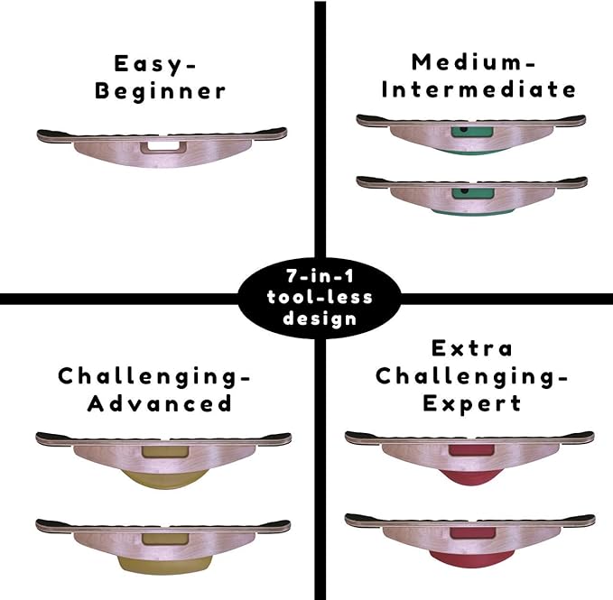 - THE ULTIMATE BALANCE BOARD WITH 7 ADJUSTABLE BALANCE LEVELS- Expertly crafted 7 adjustable balance levels-in-one toolless design with a 360-degree balance radius. 25β wide, curved deck for a sturdy, wide stance with a safe, soft, non-slip grip.