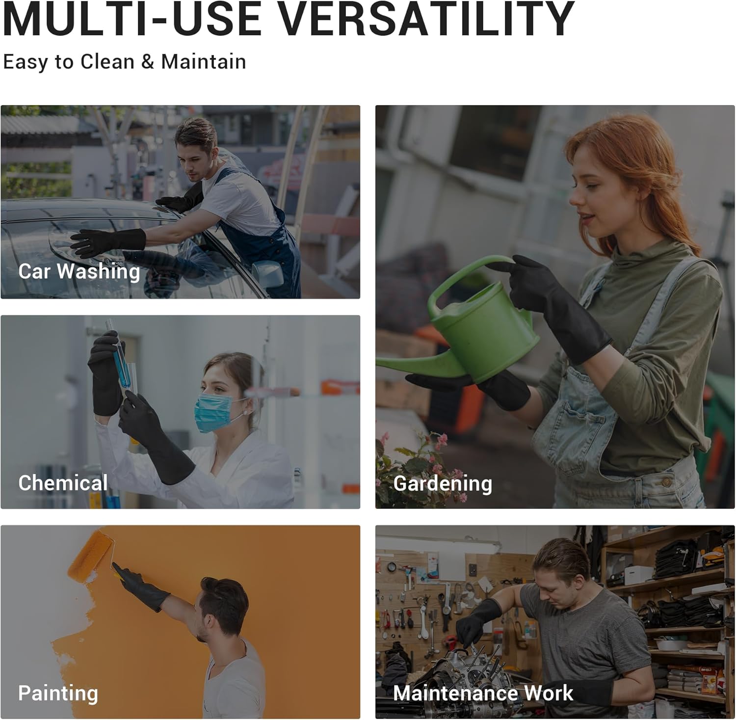 - Widely Using - You can use our black rubber gloves to dishwashing, prune your garden, clean your house, your car or pets care. It will protect you hands from cleaning chemical.
