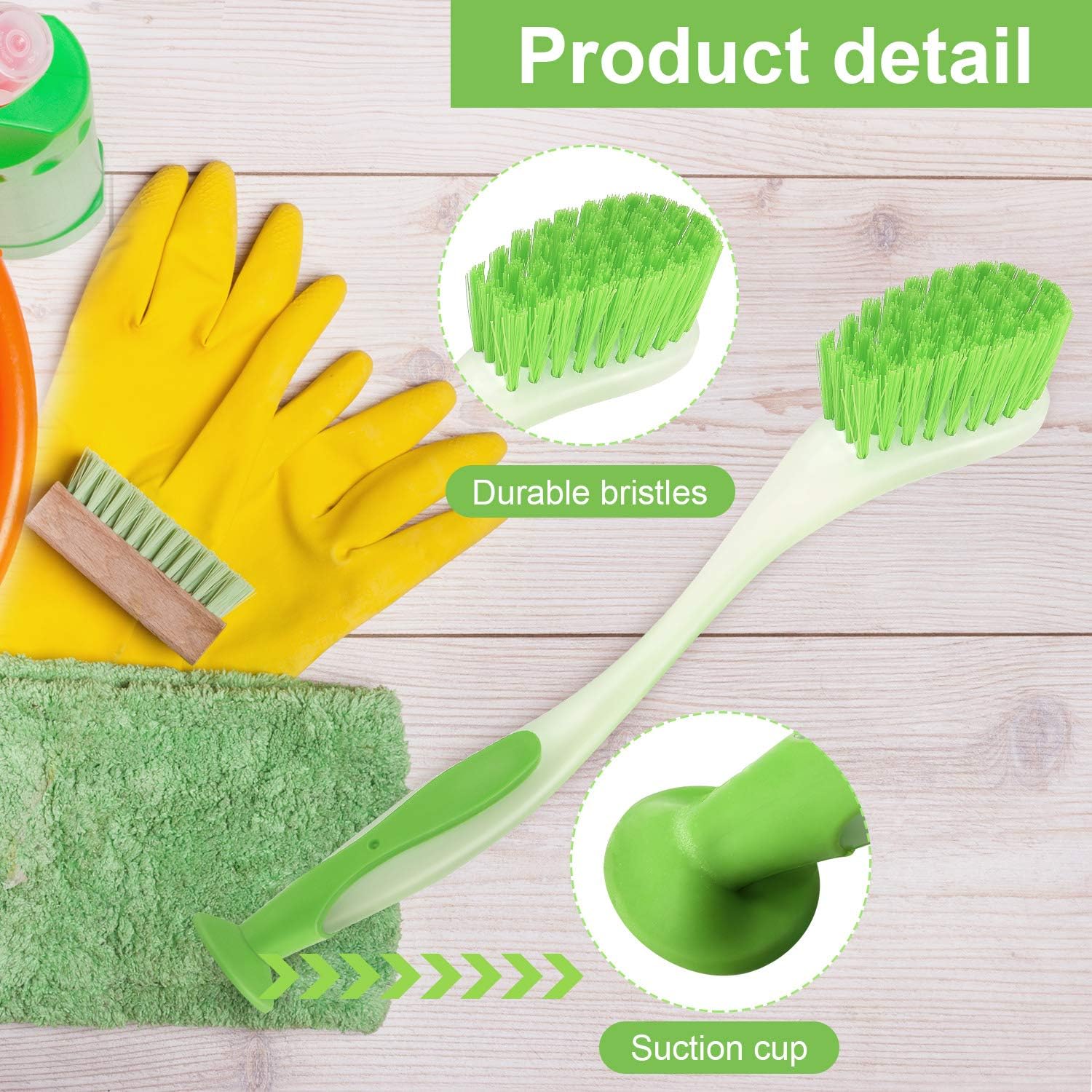 - Suction cup design: our dishwashing brushes are designed with suction cup at the bottom, can be adsorbed on the smooth surface, so that the long handle wash brush can stand on the table or on the ground, avoid the brush touching the clean place, and facilitate the storage of the brush