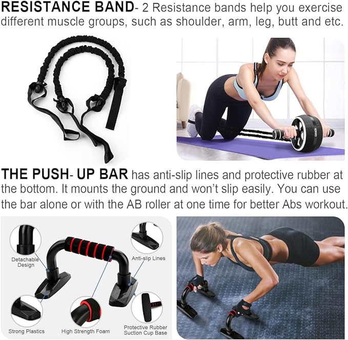 Ab Roller Wheel, 10-In-1 Ab Exercise Wheels Kit with Resistance Bands, Knee Mat, Jump Rope, Push-Up Bar - Home Gym Equipment for Men Women Core Strength & Abdominal Exercise