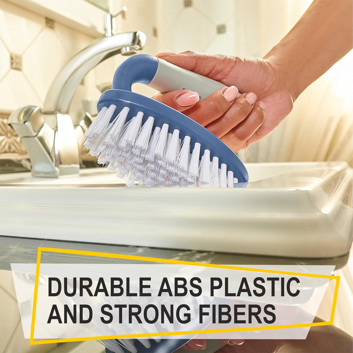 - Designed for Excellence: Ergonomic rubber handle with extra-durable polymer fibers gives you the power and ease to clean without slipping. The raised handle absorbs pressure and will protect your hands from water and detergents by providing you a secure and comfortable grip. The bathroom cleaning brushes are made with eco ABS Plastic which allowed us to reduce the weight of the brush. Our bathroom brush is ideal for heavy-duty kitchen and bathroom cleaning with minimal effort.