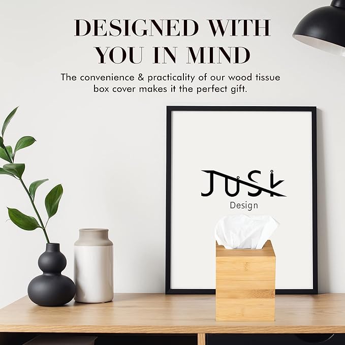 JUSK Design Tissue Box Holder - Modern, Minimalist, and Durable Wooden Tissue Box with Sliding Bottom, Easy-Refill - Premium-Quality Bamboo Tissue Box Cover, Square, Pack of 2