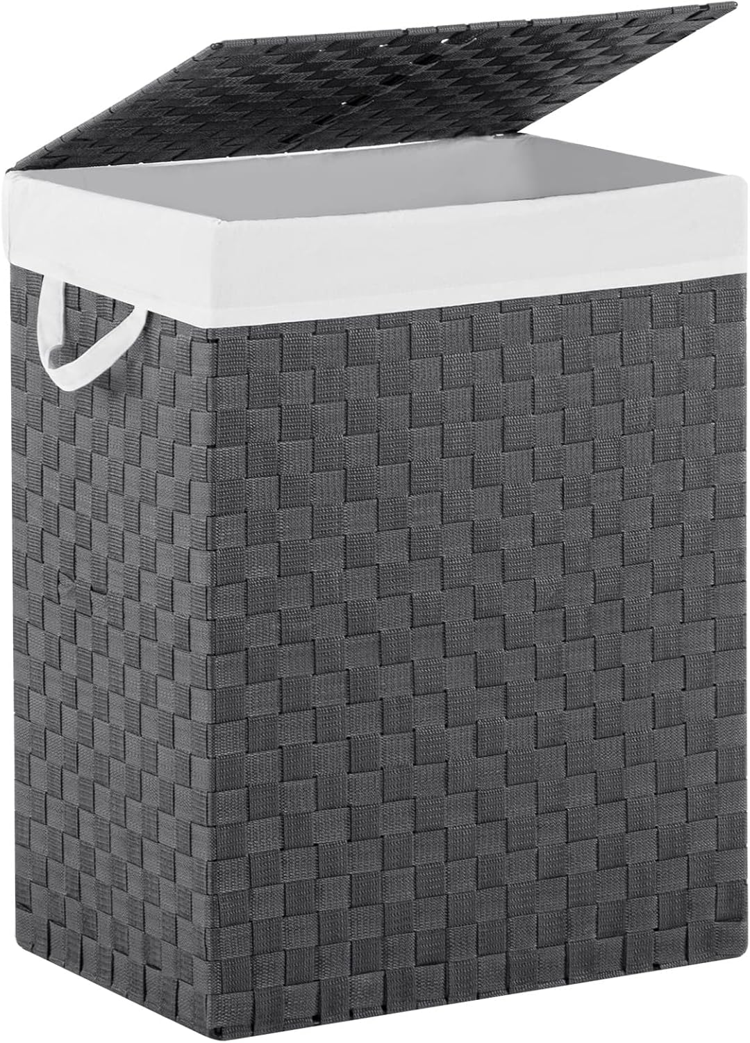 YOUDENOVA Handwoven Laundry Basket Hamper with Removable Liner Bag and Lid, Collapsible Clothes Hamper with Handle, Grey