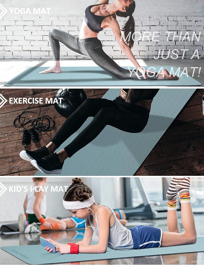 - β¨ AMPLE CUSHIONING & SPACE -- 1/3-Inch thick yoga mat provides more cushioning and stability for your body than a thin yoga matt and is safer and more comfortable. It is perfect for practicing balance postures, back support during inversions, and other yoga postures! The size of 72''x24''x1/3" large yoga mat can satisfy all yoga, pilates, and general floor exercise needs for women and men!
