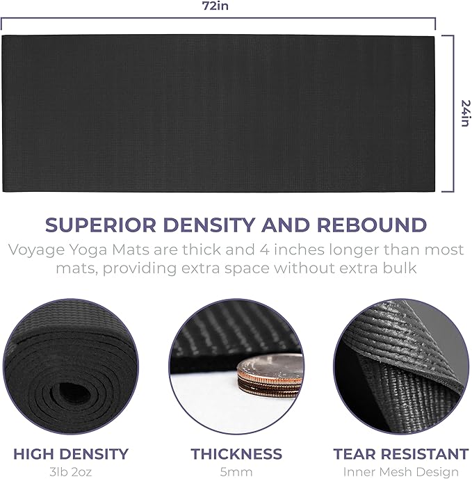 Sunshine Yoga Voyage Yoga Mat, 6 Pack, 72" x 24" Professional Studio and Gym Bulk Yoga Mats, 5mm Thick, Durable, Anti-Tear, Non Slip Fitness and Exercise Mats