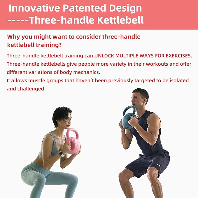 - 2023 UPGRADE THREE-HANDLE KETTLEBELL WEIGHT: Ergonomic three-handle kettlebell design for Russian Twists AB Exercise, Weightlifting and Core Training, the unique handle is very comfortable and stable to hold, which is convenient for more comfortable exercises.