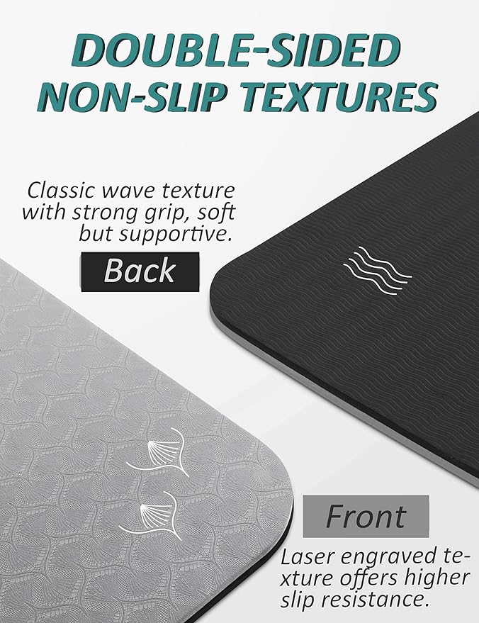 - β¨ GRIPPE NON-SLIP TEXTURE FOR ADDED STABILITY -- The bumpy non-slip texture on the surface and bottom of the yoga mat thick increases traction for stronger, giving you a firm connection to the floor, keep you from slipping around. You can safely do any poses on the non slip yoga mat without worrying about injury!