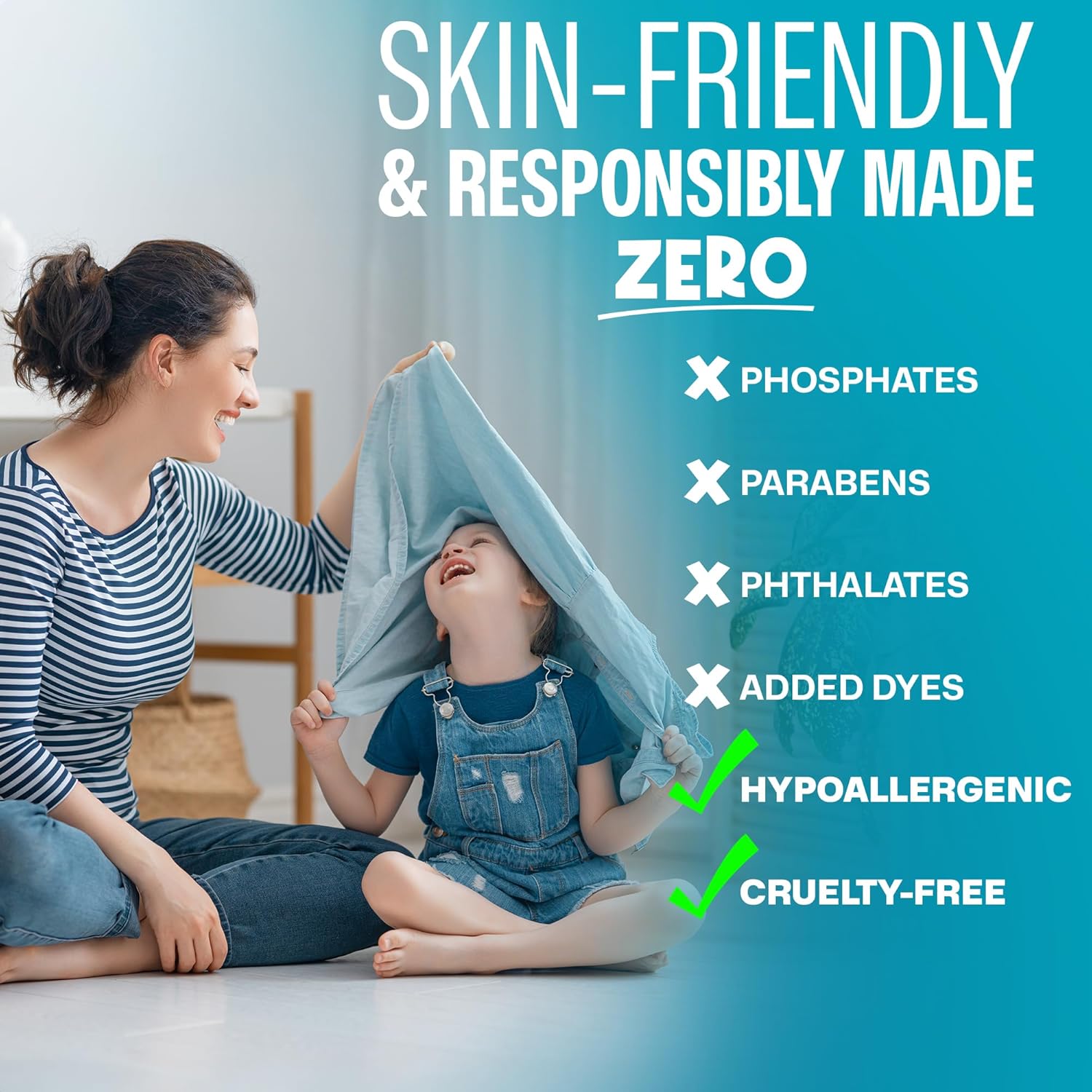 - SENSITIVE SKIN SAFE - Paraben-free, phosphate free, bleach free, dye-free. Kid Friendly. Mom Approved!