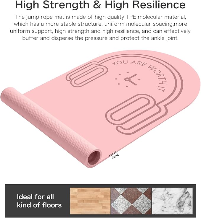 8/20/30mm Jump Rope Mat Fitness Exercise Mat Durable, Non-Slip, Workout Mats with Jump Rope & Carrying Bag for Home Gym Flooring (55"x 24")