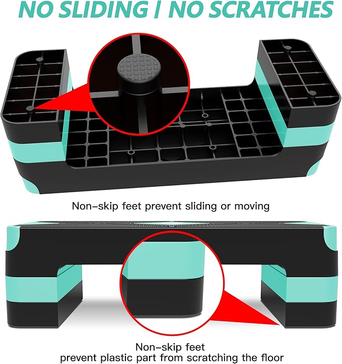 - ANTI-SLIP & NO SCRATCHES: The circular grooves and non-slip textured top of GYMMAGE Workout Stepper provide more grip and traction for exercise, prevent you from slipping/sliding. And leave you feeling safe and your movements worry free. The 4 non-slip rubber feet provide stable performance and leave no scratches