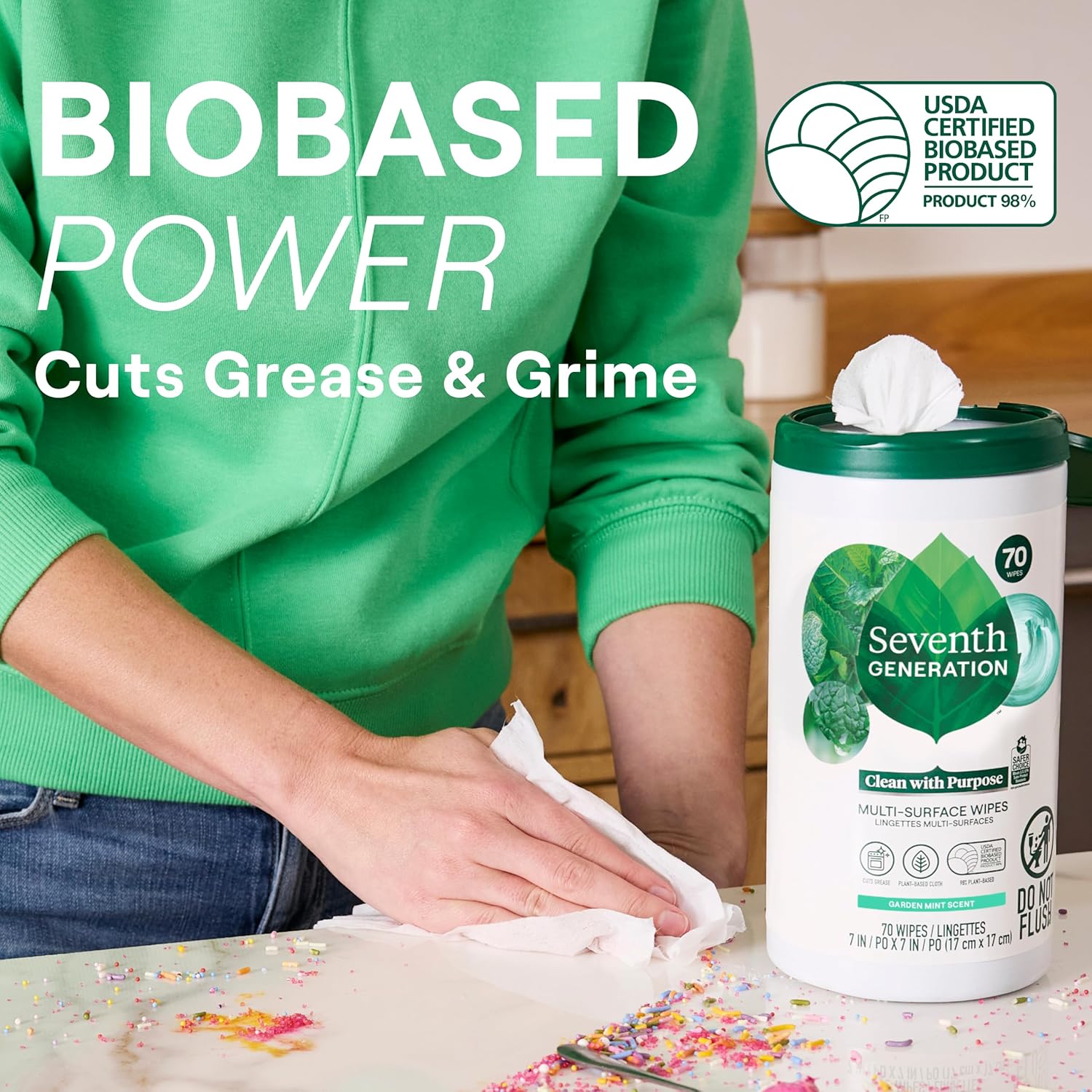 Seventh Generation Multi-Surface Wipes, Garden Mint scent, 70 ct, Pack of 6