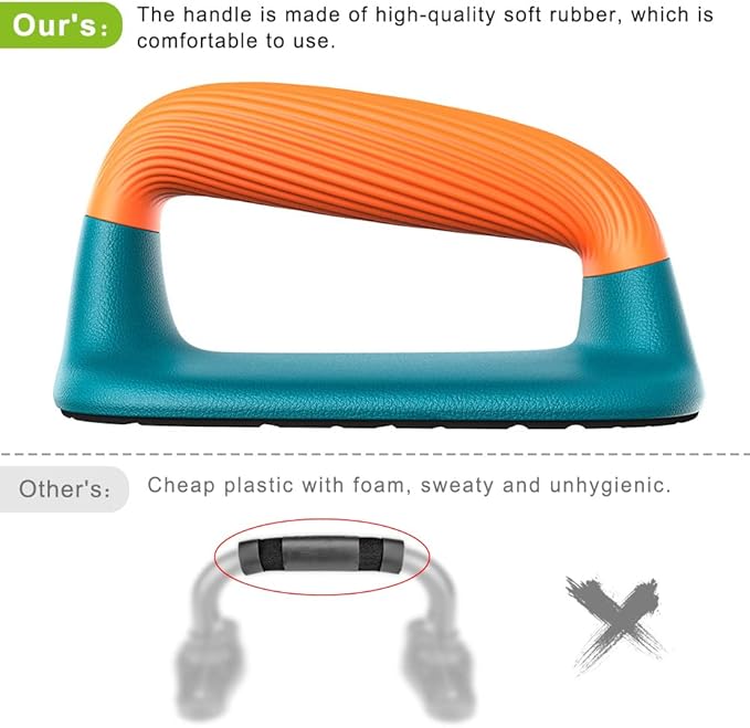 - ✅Comfortable Handle: The handles of push-ups are made of high-quality soft plastic, protect your hands, it’s not easy to get calluses. The diameter is 1 3/5 inch, and the grip is comfortable and ergonomic.