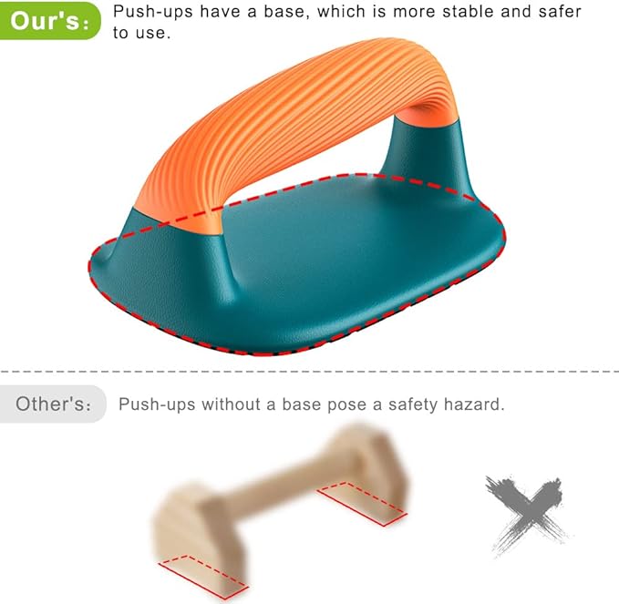 - ✅Non-Slip Rubber Pad: There is a 5*7 inch large area rubber pad at the bottom, which is super anti-slip. Ensure that the push-up bar remains stable on various floor types without sliding, and higher safety protects you from injury during exercise.