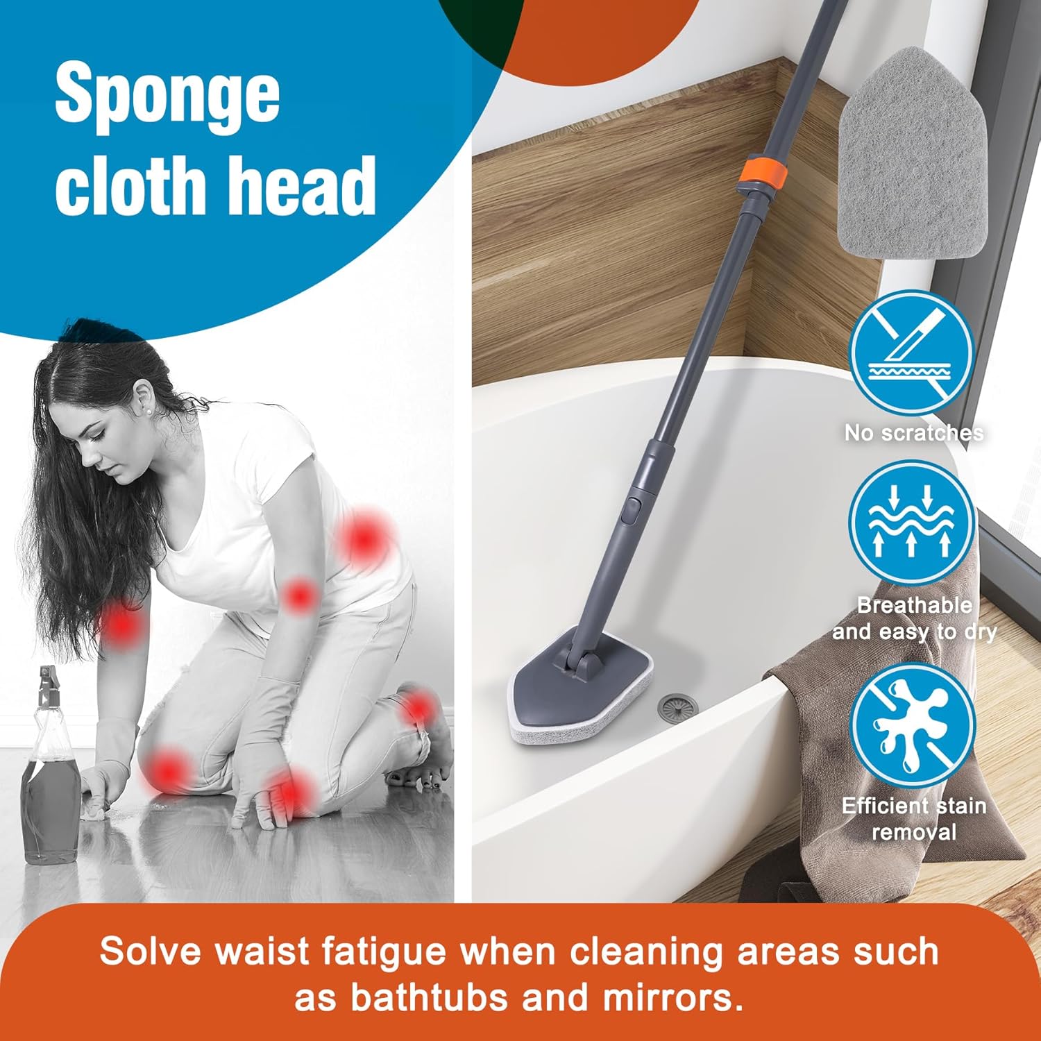 - 3 in 1 Multifunctional shower scrubber with long handle for cleaning:This cleaning brush is different from traditional bathtub brushes, has 3 different cleaning modes:bathtub scrubber, shower brush for tile cleaning,microfiber scrubber for mirrors cleaning.