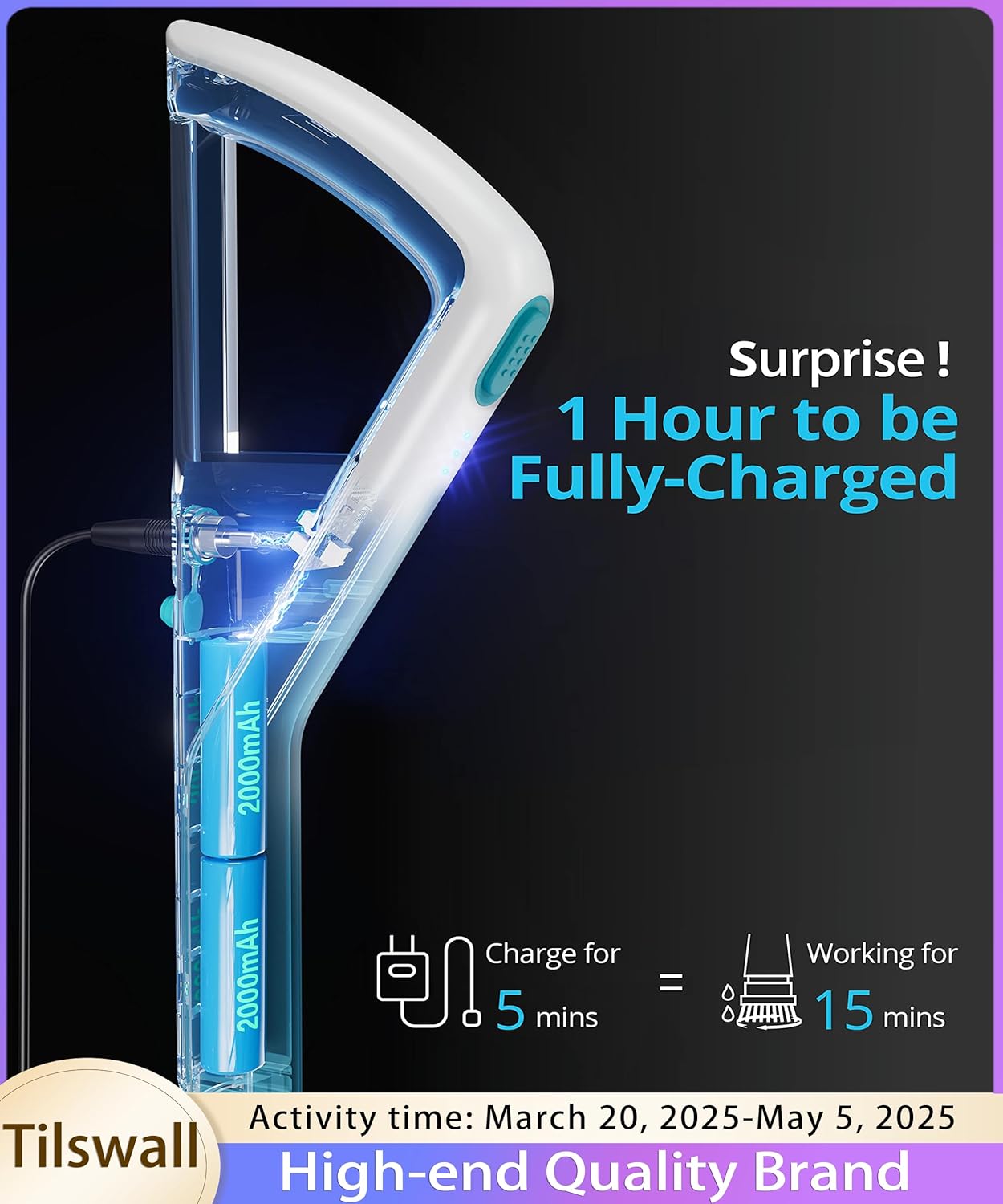 - 【Long-Lasting Battery & Quick Charge】Our electric spin scrubber cordless enjoy up to 180 minutes of runtime after just 5 minutes of charging, with a full recharge in only 1 hour. The cordless design allows for uninterrupted cleaning throughout your home.