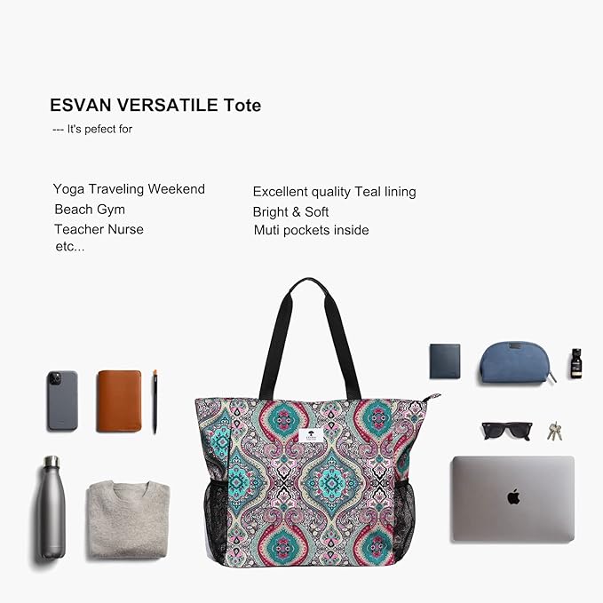 - ❤ Muti- Purpose Yoga Gym Tote – Not just a yoga mat bag , ESVAN Tote design for a All- Purpose Bag. You can use it for Holliday or vacation,office,gym,picnic,pool,beach etc... holders provide plenty of space for storing gym equipment, workout gear, extra clothes, a water bottle, your mat, towels, and so much more.