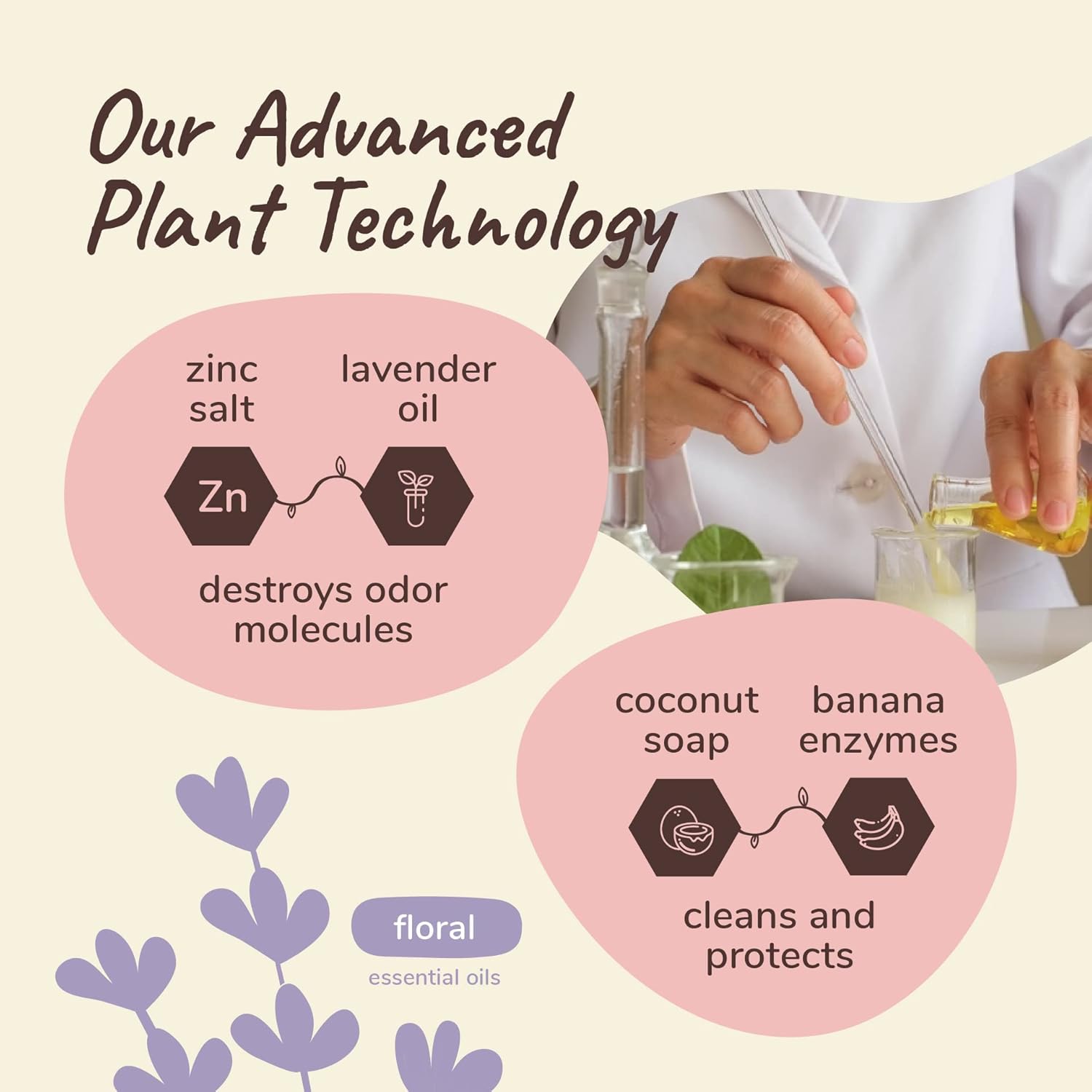 - NATURAL: Naturally derived zinc salt from castor oil seed absorbs and destroys odor causing molecules.