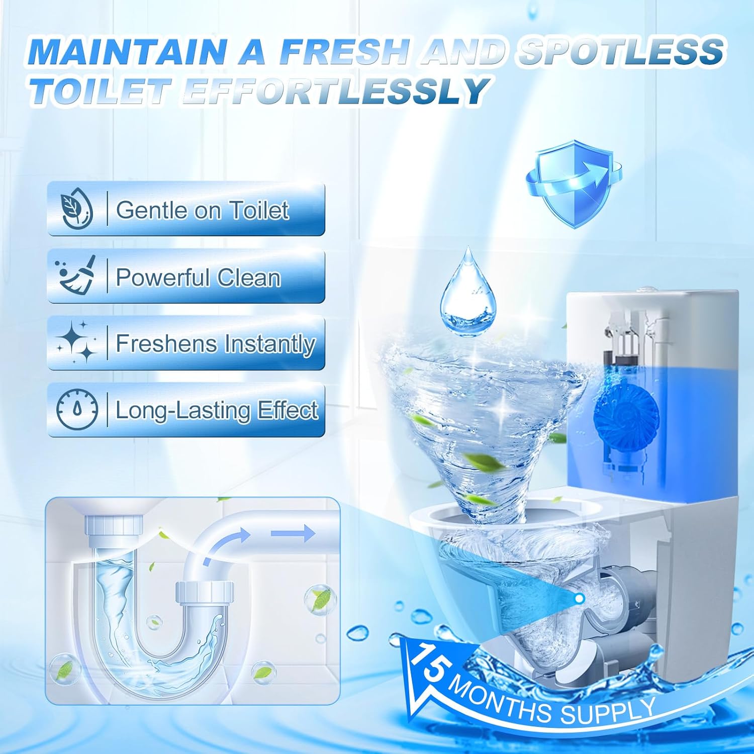 - Just put one blue toilet cleaner bubble directly into the toilet tank then it will make the toilet refresh under every brushing.Toilet cleaner saves your time and protects your health