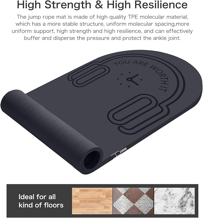 8/20/30mm Jump Rope Mat Fitness Exercise Mat Durable, Non-Slip, Workout Mats with Jump Rope & Carrying Bag for Home Gym Flooring (55"x 24")