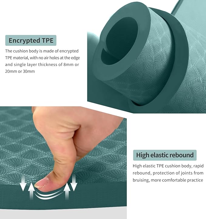 - ❤ THICK & SAFE: This 20mm thick exercise mat would alleviate stress on pressure points such as joints, hips, hands and knees.This durable and thick yoga mat with extra cushioning effect may well protect your joints during your yoga or fitness exercise.