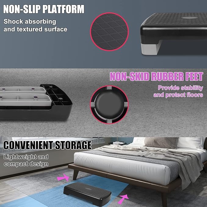 - [Textured surface]: Non-slip, and shock absorbing, the surface is a slip-free, meaning you can have stability with every single set of steps