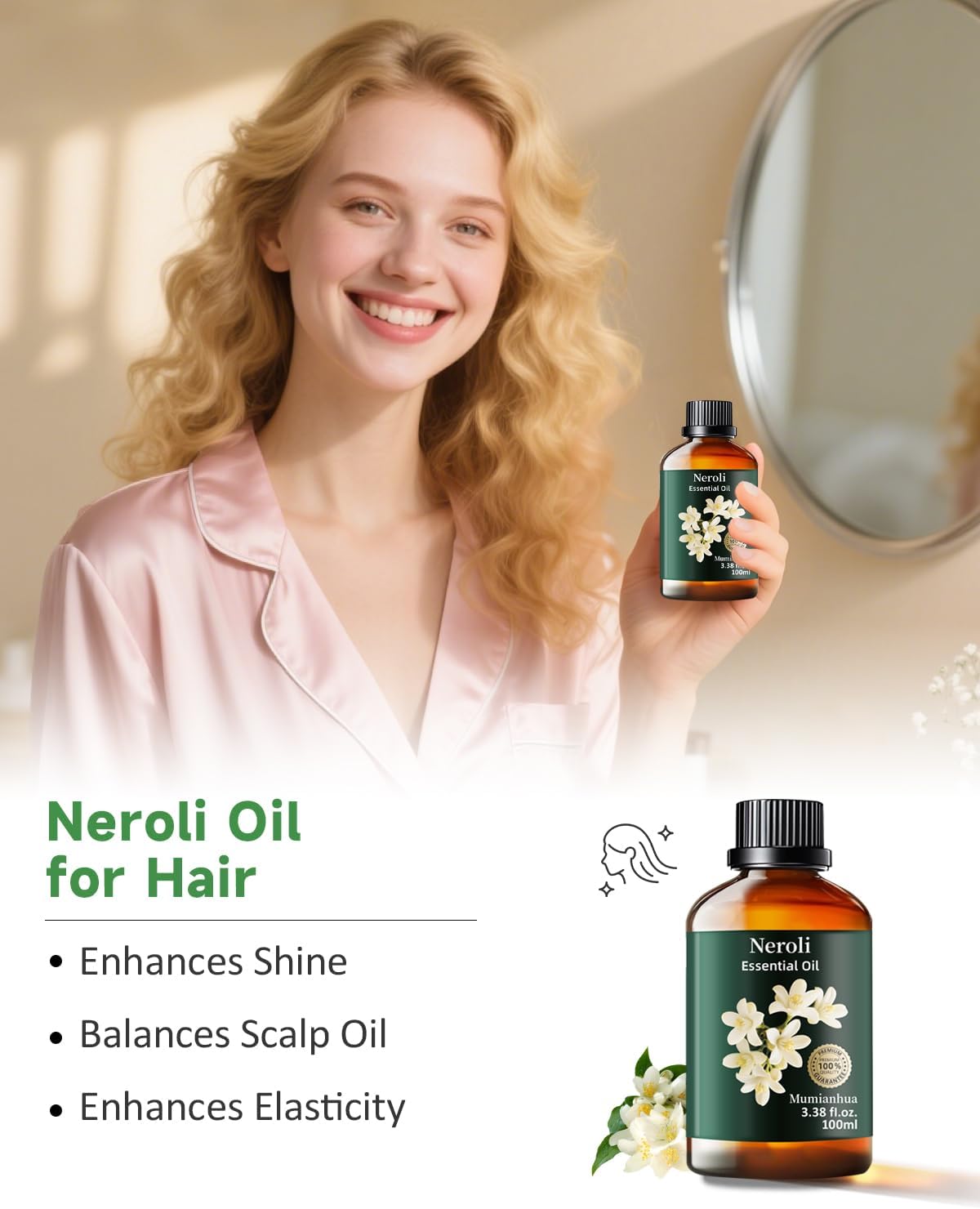 Mumianhua Neroli Essential Oil 100% Pure- Therapeutic Grade Orange Blossom Oil for Cleaning Sprays, Home Perfume & Women's Cologne | Citrus Floral for Diffuser, Candle & Soap Making 3.38 Fl Oz
