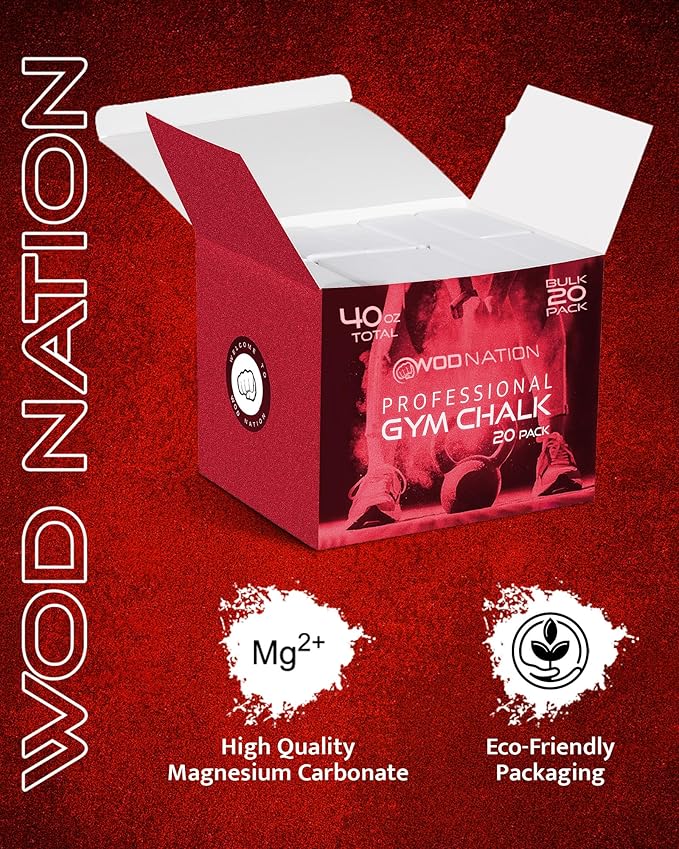 - WOD Nation Gym Chalk: Elevate your training sessions with WOD Nation Gym Chalk Blocks, crafted for those serious about athletics. This bulk gym chalk ensures optimal hand grip for powerlifting, gymnastics, and rock climbing