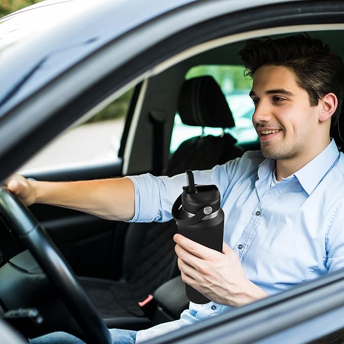 - 【NEW DESIGNED WATER BOTTLE】 HYDROWION T-shape water bottle with its sleek and new designed slim outline fits in any standard cup holder snugly.The largest capacity water flask in the cup holder can fit in any standard cupholder,perfect for outdoor activities especially for driving,field trip,beach,camping,cycling,etc
