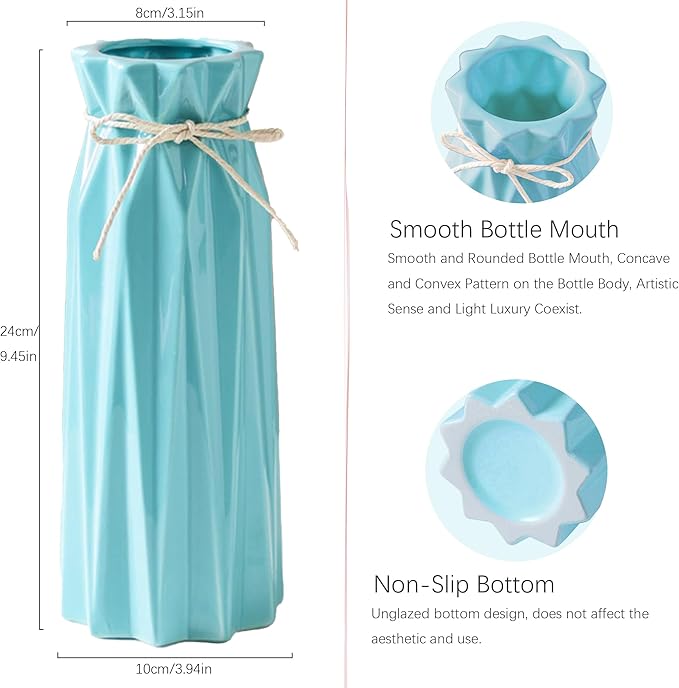 - 🌷【Hand blown origami vases】Ceramic vases are hand blown at high temperature by experienced craftsmen with high quality material, texture uniform. The bottle is polished and mild to the touch, the thick design of the bottom of the bottle makes it not easy to shake, is sturdy, durable, leak-proof and easy to clean,chic vase size. Handmade vase, the size may have a slight deviation