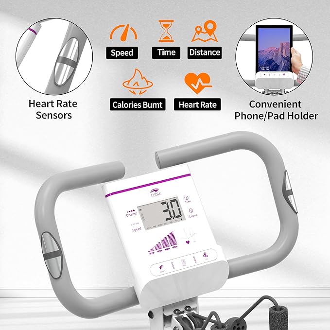 - 【LCD Monitor & Pulse & Phone Holder】LCD monitor tracks your time, speed, distance, calories burned and odometer while you are cycling--to give you a more scientific exercise date. Place your phone on the phone holder to watch your favorite shows while workout.Pulse tracks your real-time heart rate,phone bracket which allows you to enjoy exercising and entertainment at the same time.