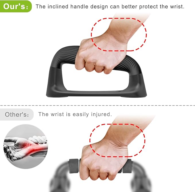 - 🙌【Suitable for All Fitness Levels】Our push up bars are suitable for men and women of all fitness levels, whether you are a beginner or an expert. You can adjust the difficulty of your pushups by changing the angle or position of your body. You can also use our push up bars at home, gym, office, or outdoors