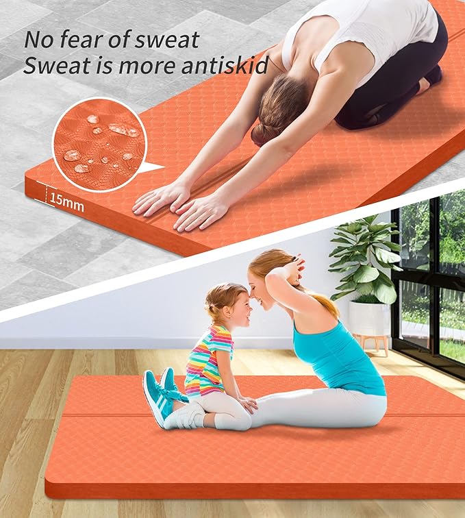- 🌹NON SLIP SURFACE FOR ADDED STABILITY: The oversized mat has textured surface to enhance traction that you can perform any movement with confidence. Non-slip design aids in balance to hold postures much more longer and protect your joints and knees without compromising support or stability.