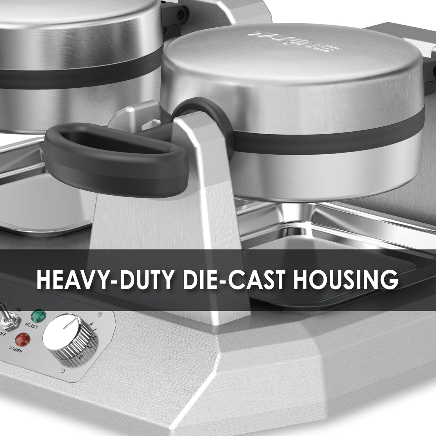 Waring Commercial Double Belgian Waffle Maker with Serviceable Plates, Duel Side by Side Rotating Cooking Non-Stick Surfaces, Heavy Duty Restaurant Foodservice, 50-60 Waffles an Hour, 208V, 2700W