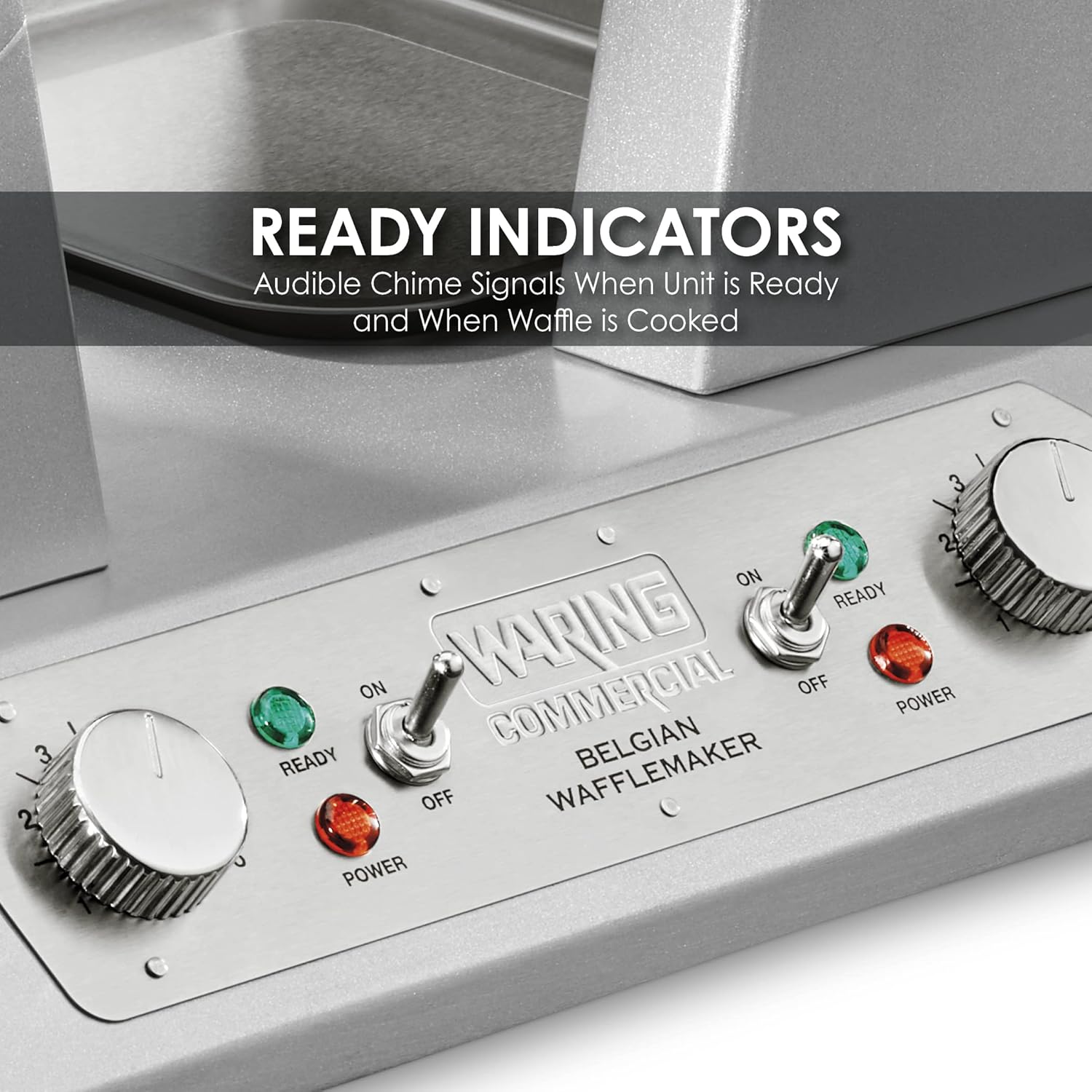 - Independent power ON and READY-TO-BAKE LED indicators for each wafflemaker, along with ready lights and audio chime signals, let you know when the unit is ready to cook and when the waffle is ready to serve