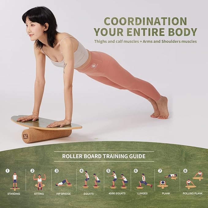 - WONβT SCRATCH FLOORS&EASY-GLIDE WOODEN ROLLER:The balance board surface is smooth and don't worry about damaging the floor.This roller also work great on different types of floor,including wood, carpet, cork, concrete,etc