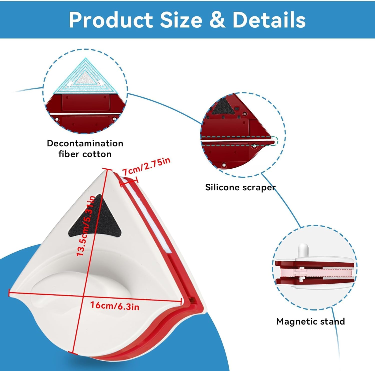 - Double Sided: The double sided design lets you clean both the inside and outside window at the same time,magnetic window cleaner will help you get the job done faster.(just suitable for single-sided window)