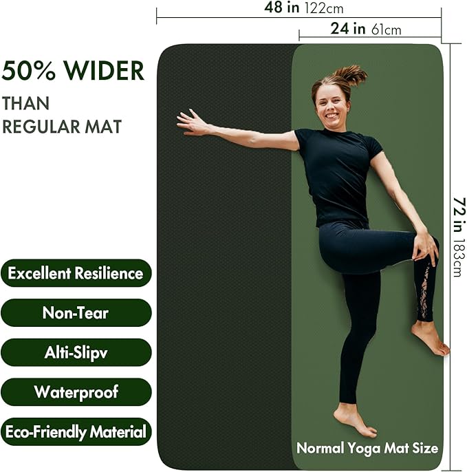 FrenzyBird Large Yoga Mat 6'x 4'(72”x 48”)—1/4" &1/3" Extra Wide Exercise Mat 183cm x 122cm Large Exercise Mat Big Home Yoga Mat Pilates Mat,Non Slip,Thick,TPE Workout Mat,for Women & Men, Yoga, Pilates, Gym and Floor Workouts Pilates