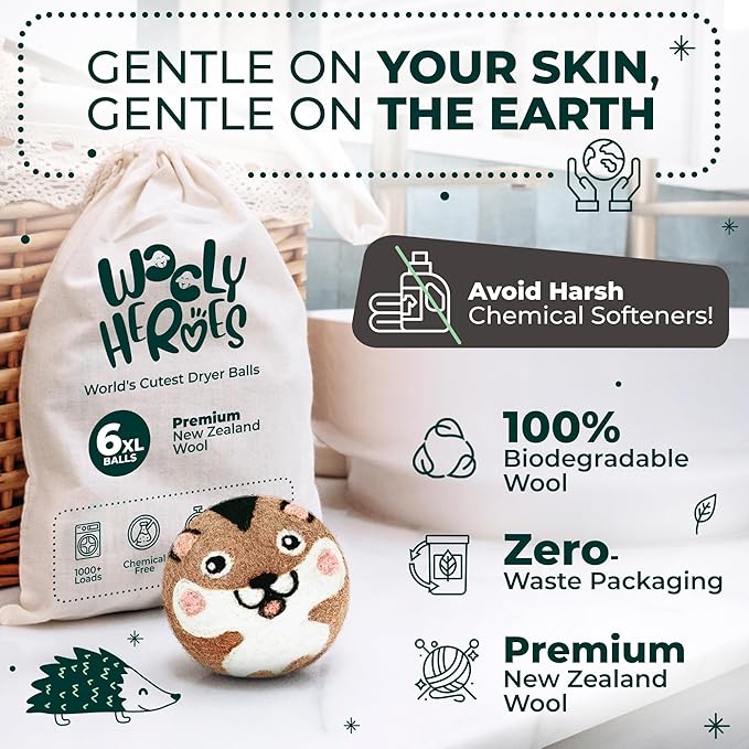 - NO MORE HARSH CHEMICALS: Replace dryer sheets with 100% natural wool dryer balls for safe laundry without skin irritants.