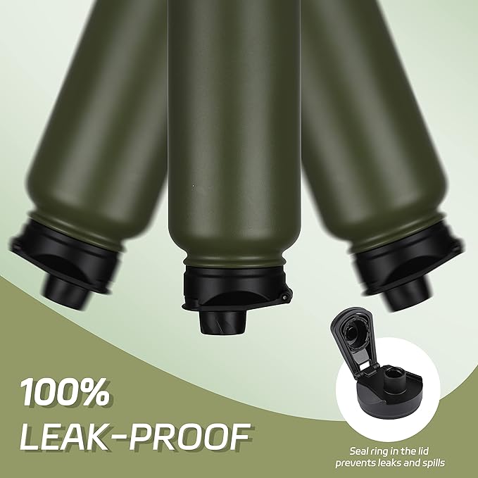 HASLE OUTFITTERS 40oz Stainless Steel Water Bottle, Vacuum Insulated Double Walled Leak Proof Sports Water Bottle with 2 Lids (Straw and Spout Lid) Thermo Mug Keep Cold and Hot(Army Green,1)