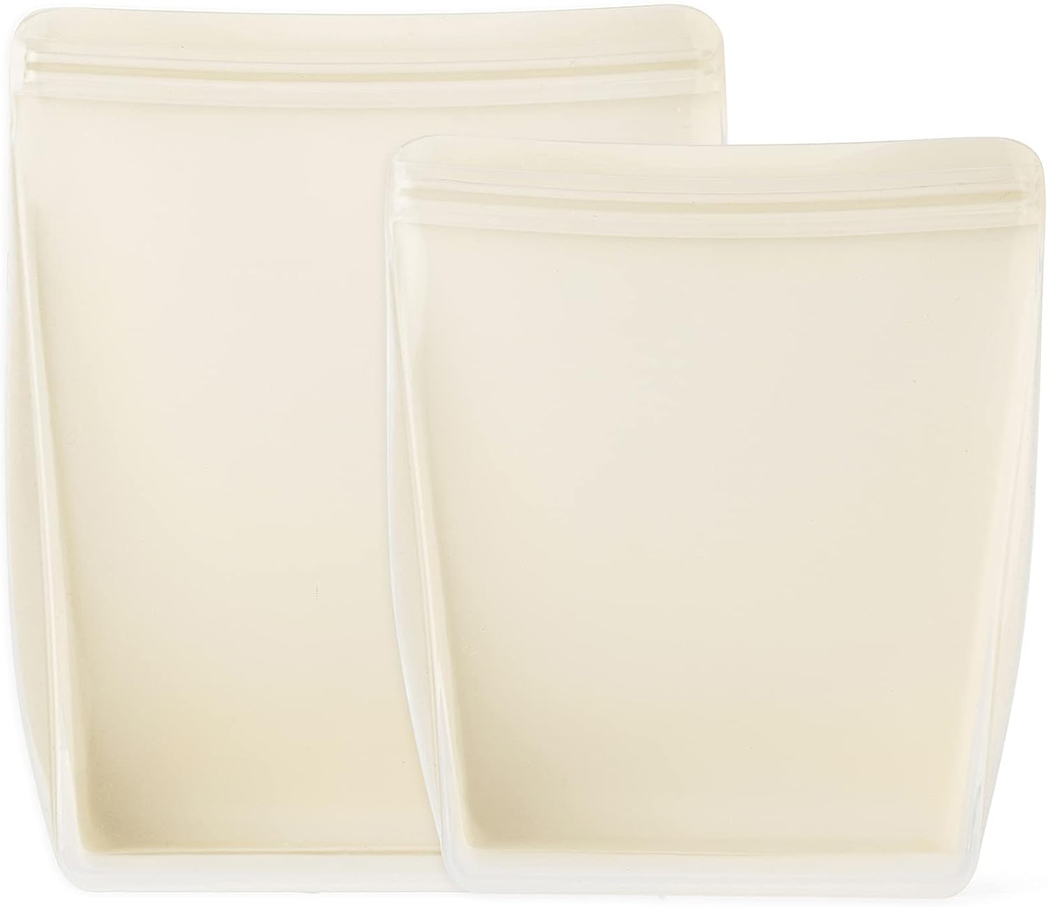 W&P Porter Silicone Reusable Storage Bags, Stand-Up Variety 2 Pack (36oz, 50oz), Cream, Food Storage Container, Microwave and Dishwasher Safe, Easy Cleaning