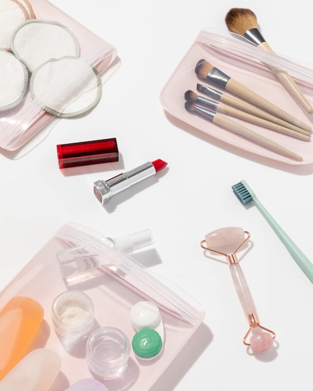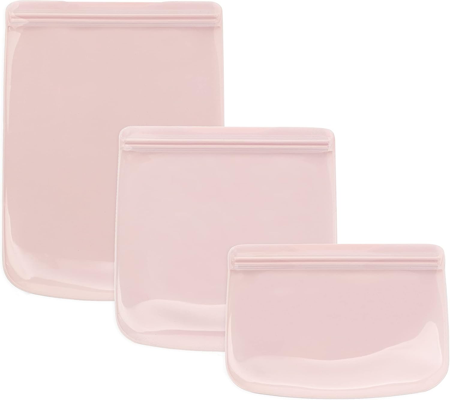 W&P Porter Silicone Reusable Storage Bags, Flat Variety 3 Pack (10oz, 34oz, 46oz), Blush, Food Storage Container, Microwave and Dishwasher Safe, Easy Cleaning