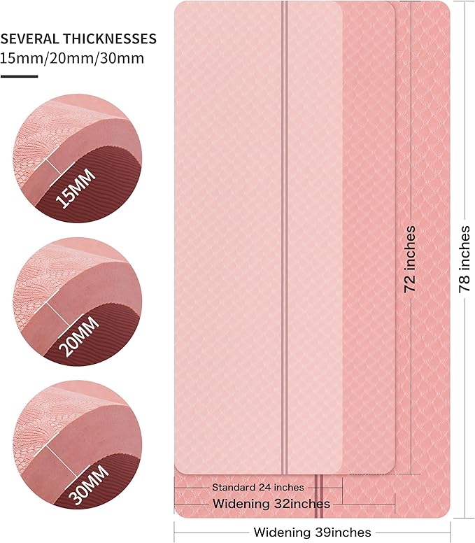 - 🌹EXTRA LONG EXTRA WIDE: nuveti's 72"x32"/78"x36" offers adequate space to fit any type of exercise like yoga, pilates, bikram, and fitness exercise.Most yoga mats on the market are 6mm, 8mm or even thinner. This yoga mat is thickened to 15mm,20mm,30mm which can provide more support and protection for your ankle, knees, joints, and body on hard floors, as well as absorbs vibration and reduces noise.