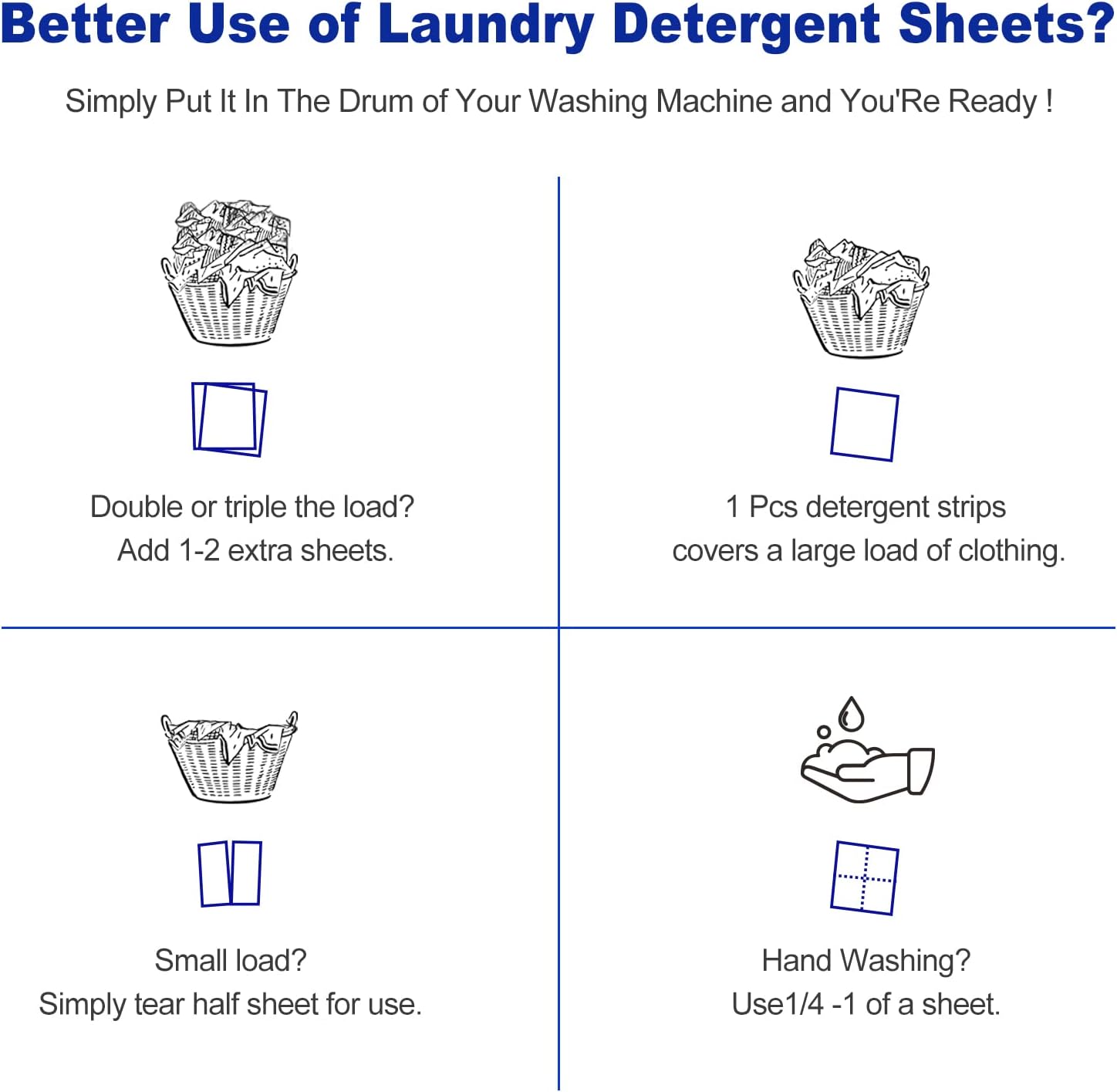 - 🧺SAFE MATERIAL, SAFE FOR PETS AROUND, SAFE FOR HOME & MORE: Dr.Easy Laundry Detergent Sheets are formulated by High-Quality biodegradable and safe ingredients that are proudly cruelty-free & vegan, Never Tested On Animals, with 0% Dyes,0% Phosphates,0% Parabens, 0% Bleach Or 0% Brighteners, compatible for all washers or hand wash.